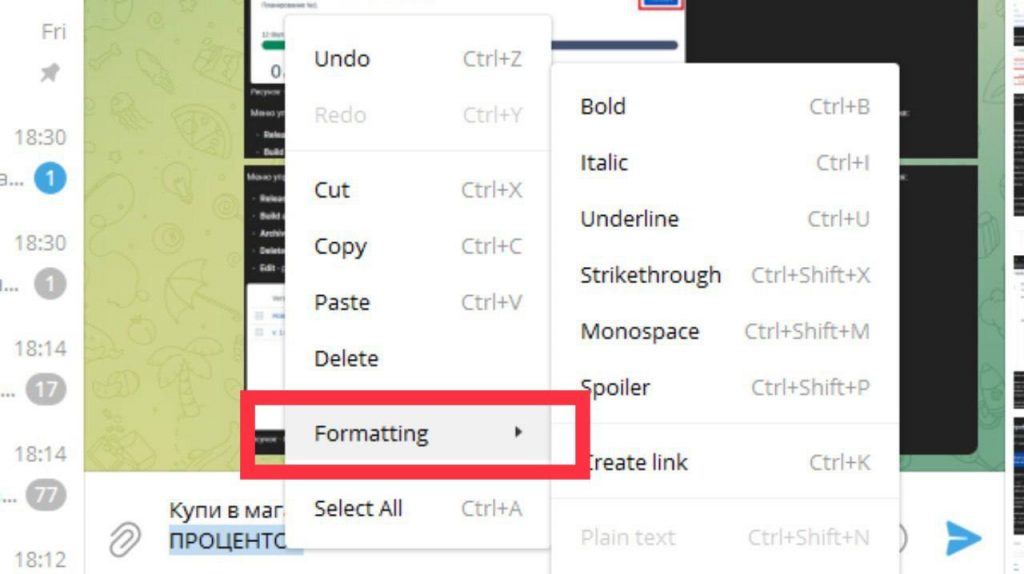 Кстати, это можно сделать и на десктопе. Если вы сидите с компьютера, то для форматирования текста выделите его, щелкните правой кнопкой мыши и во вкладке «Форматирование» найдете те же опции.