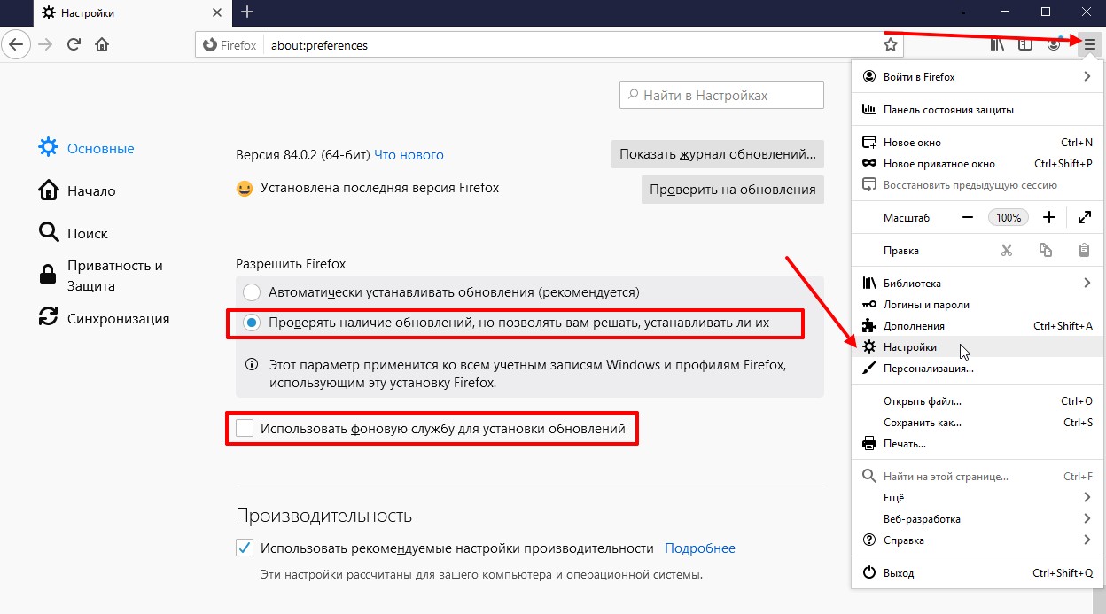 Теперь можно включить интернет. Перезапустите браузер — при запуске Firefox будет уведомлять об обновлении — нажимайте кнопку «Не сейчас».