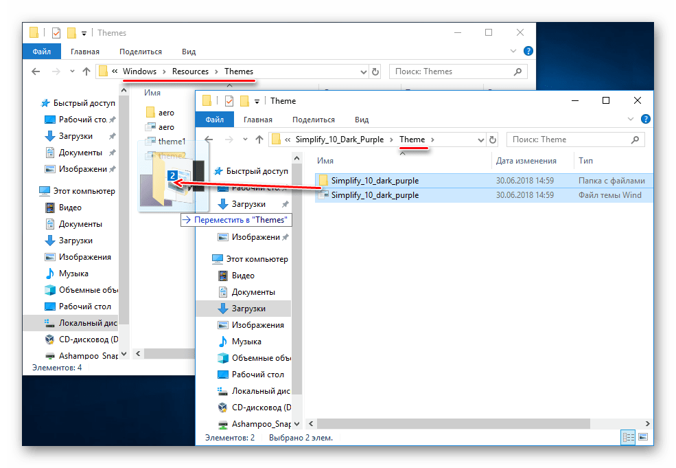 Распакуйте архив в папку и файлы, которые появились, скопируйте в директорию Themes, где находятся стандартные темы ОС Windows 10. Включить новое оформление ОС можно в том же окне, где лежат стандартные темы.