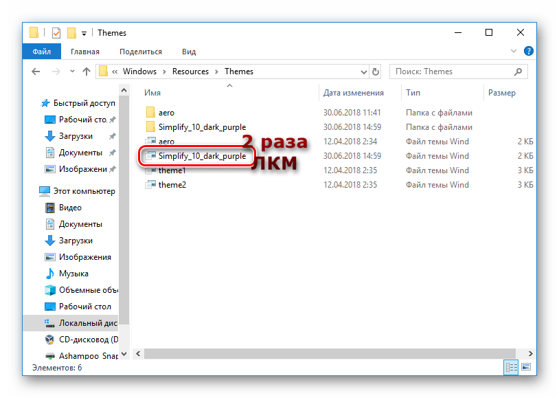 Скопируйте файл формата .theme в папку, расположенную по пути «C/Windows/Resources/Themes».