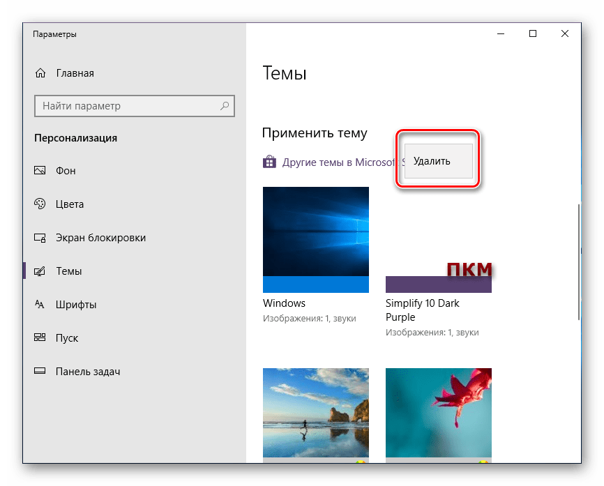 Важно! Предустановленные в ОС Windows 10 темы нельзя удалять т.к. они защищены