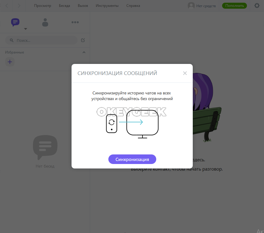 - Далее на компьютере появится интерфейс Вайбера, а вы получите возможность общаться с привычными контактами с ноутбука.