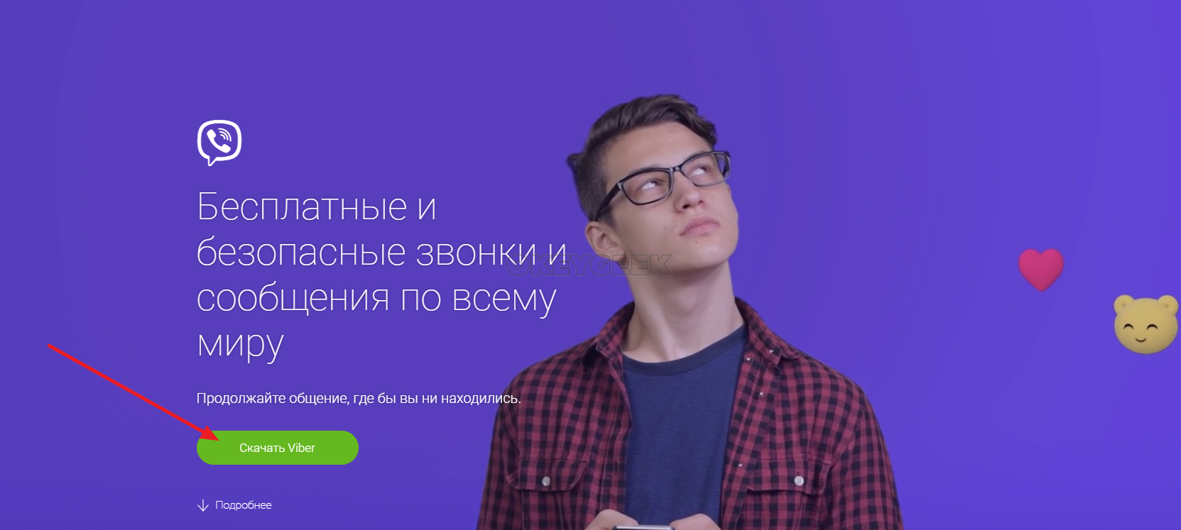 Прямо на главном экране будет кнопка “Скачать Viber” — нажмите на нее.