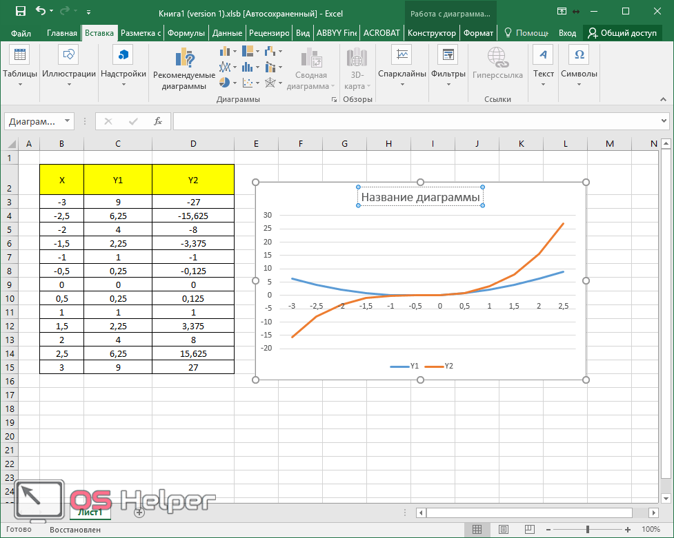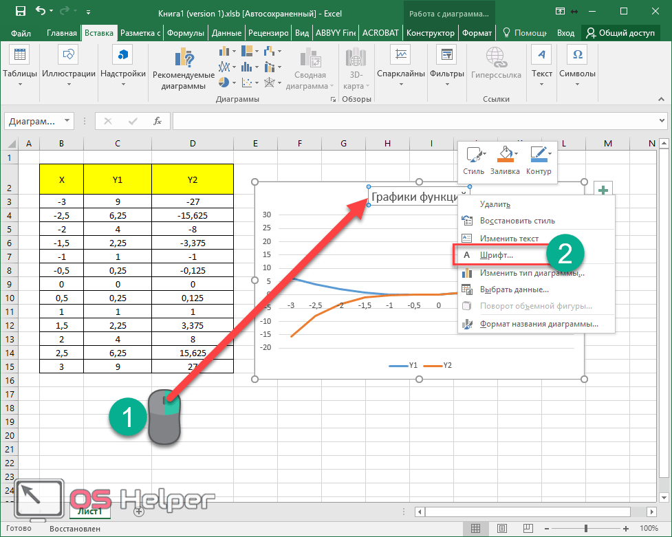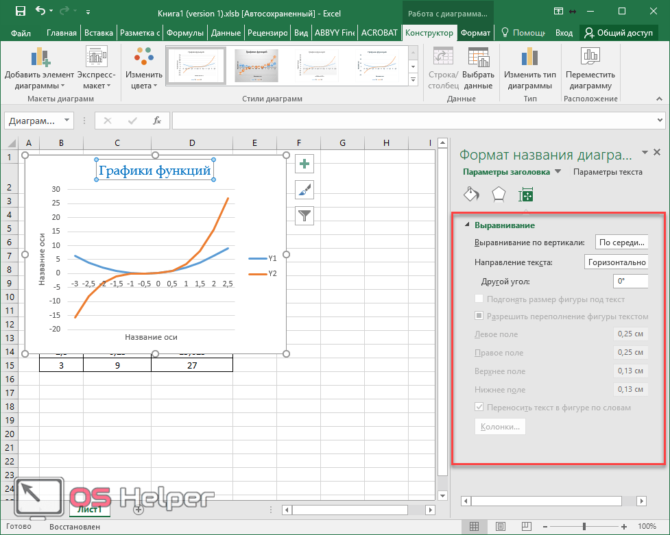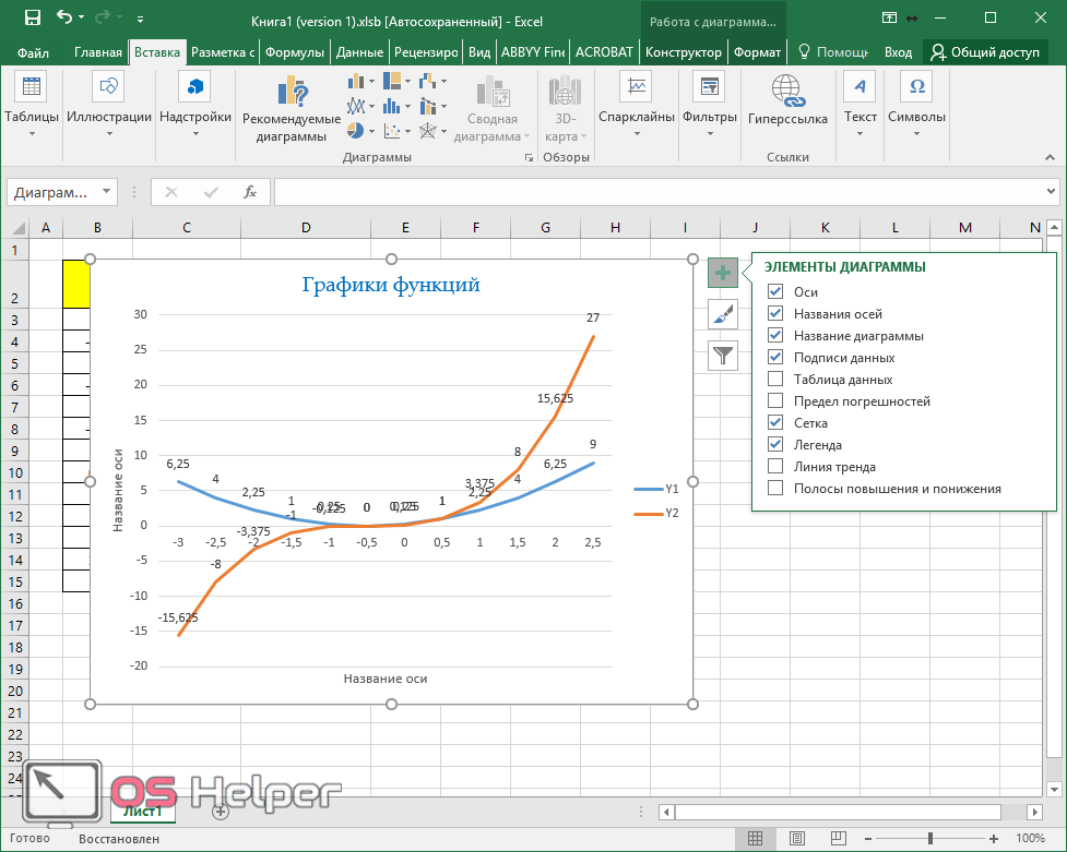 Для того чтобы вертикальная и горизонтальная ось не оставались безымянными, нужно сделать следующие действия.