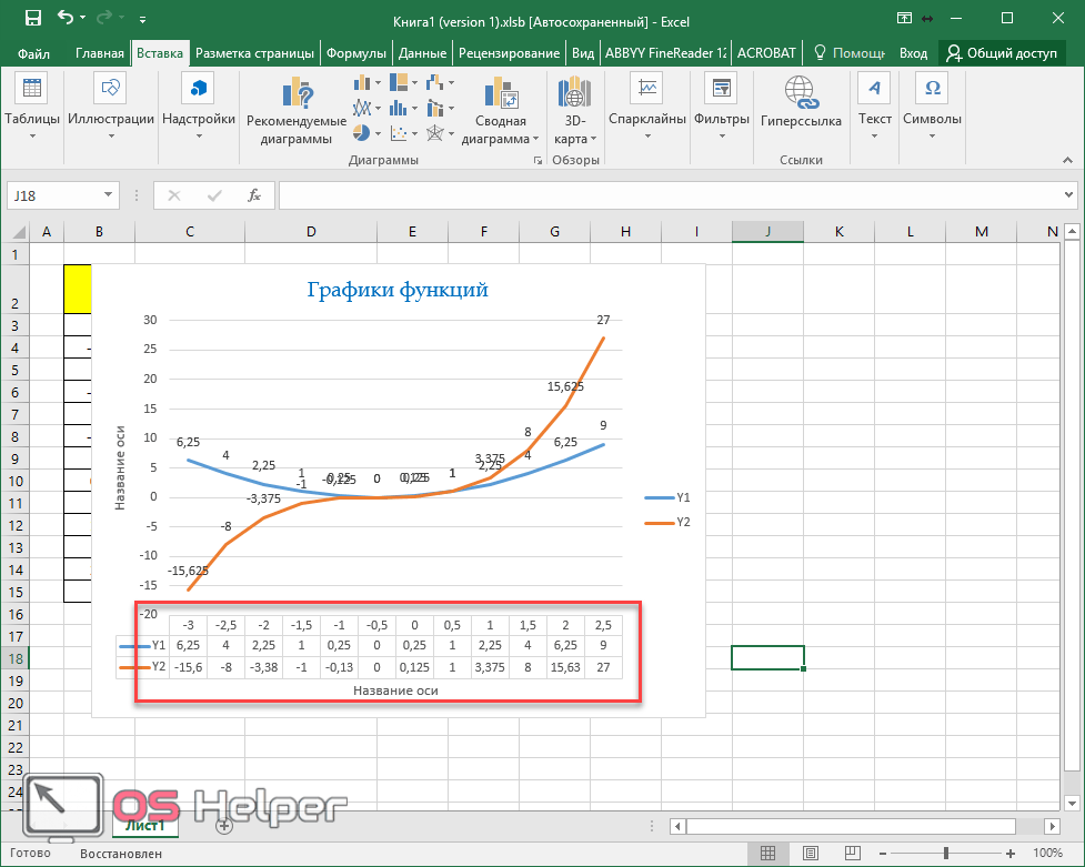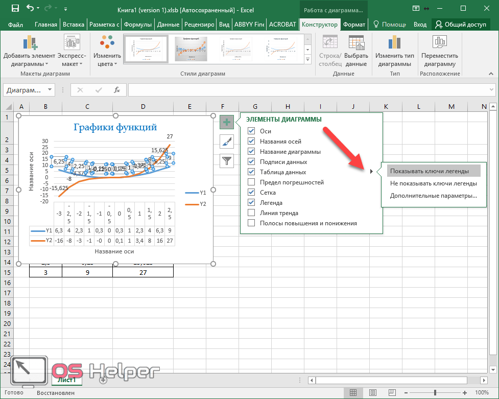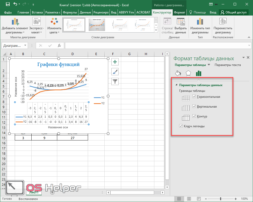 Благодаря этому на диаграмме появится таблица всех значений, которые использовались для создания графика.