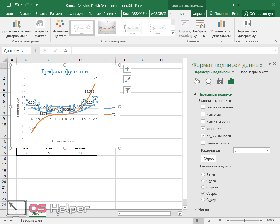 В результате этого возле каждого значения появится цифра, по которой и был построен график. В некоторых случаях это облегчает анализ.