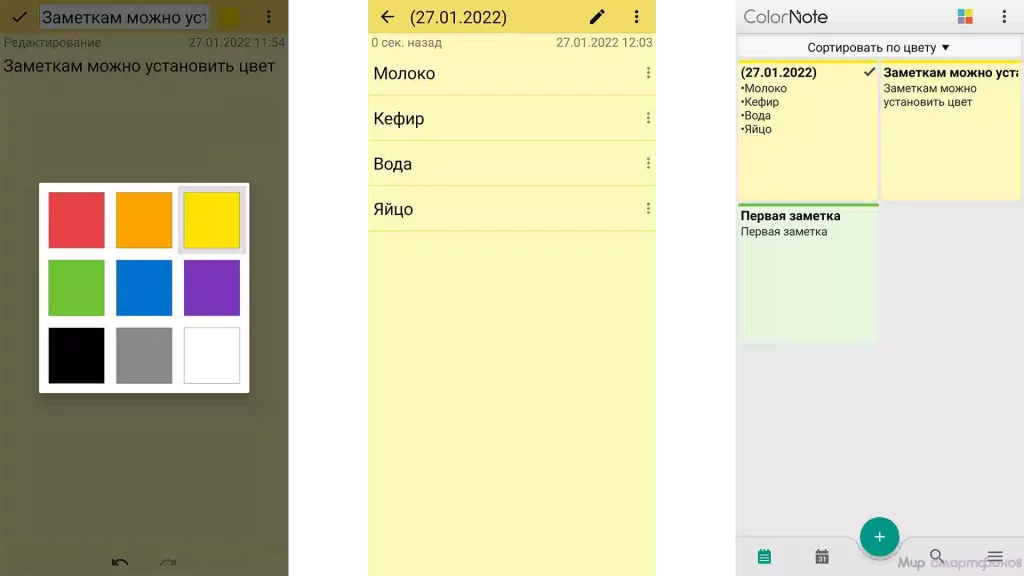 Для каждого можно задать свой окрас. Поэтому получится легко организовать максимально удобное рабочее пространство. А для быстрого доступа стикеры можно разместить на главном экране смартфона в виде виджетов. При этом особенно ценные можно скрыть от посторонних глаз путем установки пароля.