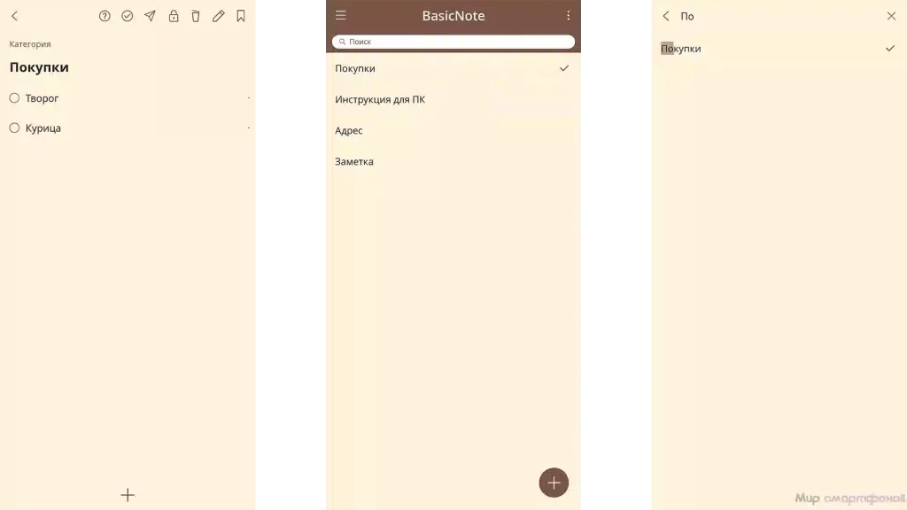Второе приложение от разработчиков BlackNote имеет схожий функционал, но не делает упор на черные тона. Оно отличается более приятным дизайном с мягкими оттенками. А привлекает BasicNote простотой применения. В нем нет ничего лишнего или неоднозначного. Вносить можно только письменные примечания или списки с функционалом вычеркивания неактуального либо выполненного. У каждого текста корректируется размер шрифта или указывается пароль доступа. Также можно воспользоваться категориями, чтобы распределить заметки для удобства.