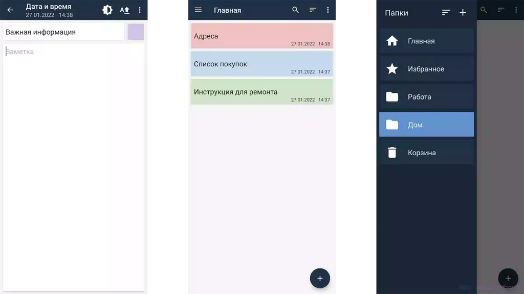 Простейший блокнот для создания текстовых заметок позволяет записывать информацию обычными карточками либо списками