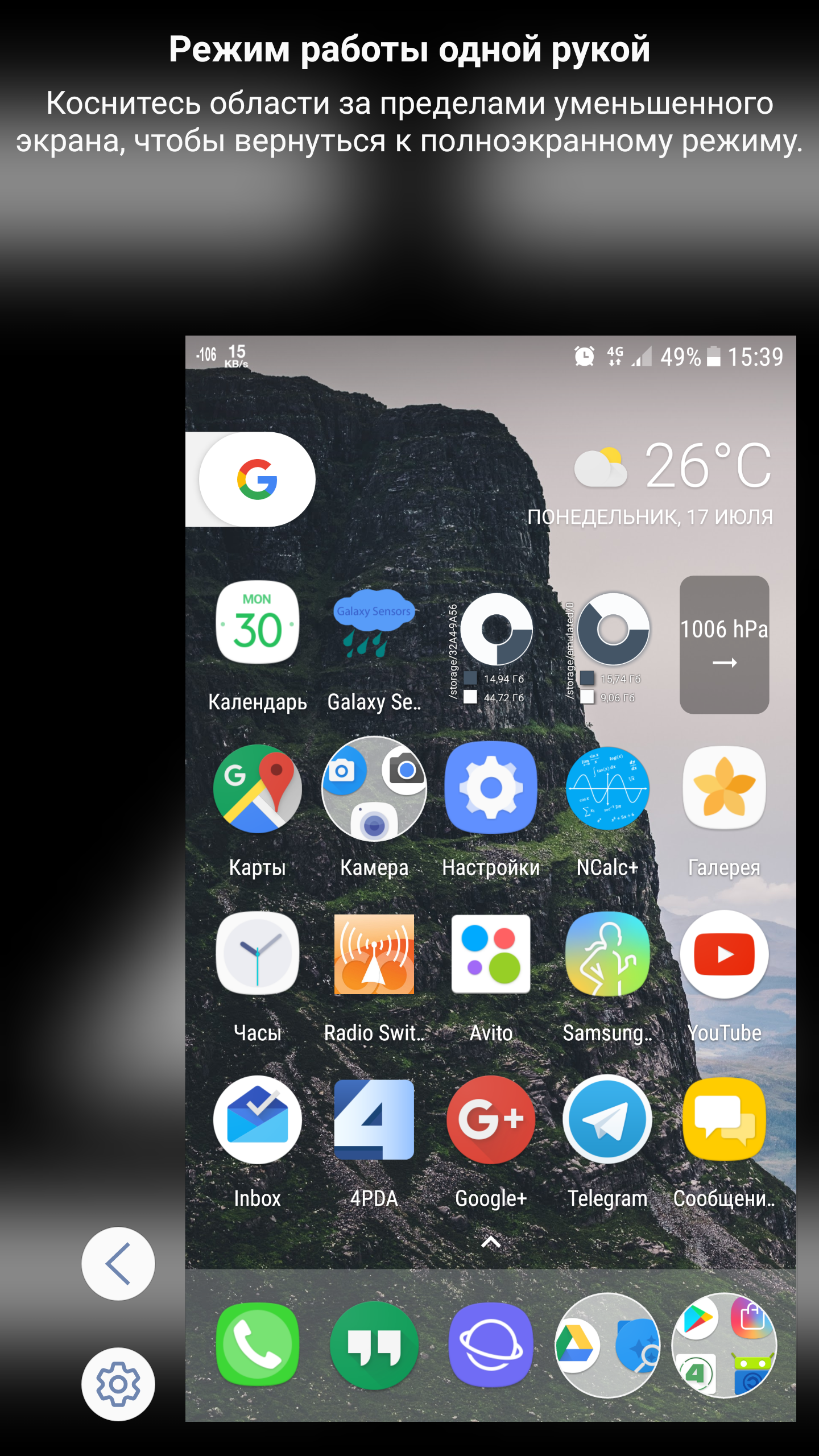 Режим управления одной рукой в Samsung и Overscan
