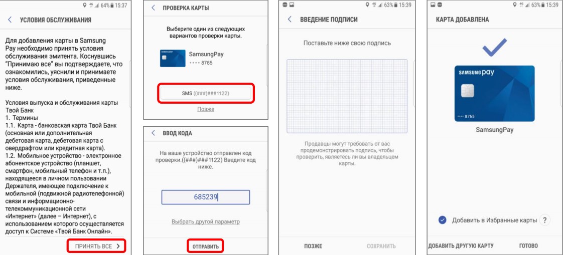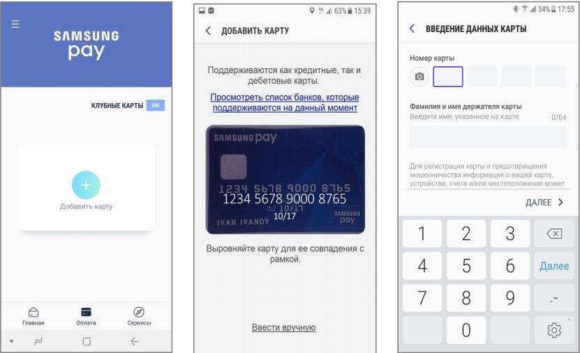 - Выбор способа оплаты – Samsung Pay или напрямую банковская карта.