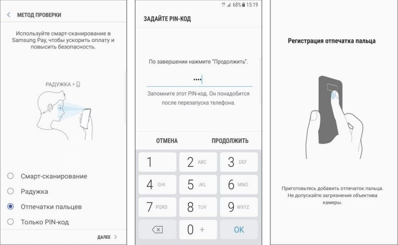 - Установите защитный пароль для авторизации пользователя при оплате. Зайдите в раздел метод проверки и укажите использование отпечатка пальца, но для этого придется придумать PIN или графический ключ.
