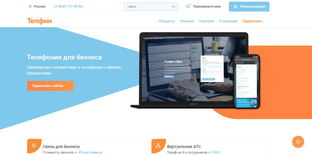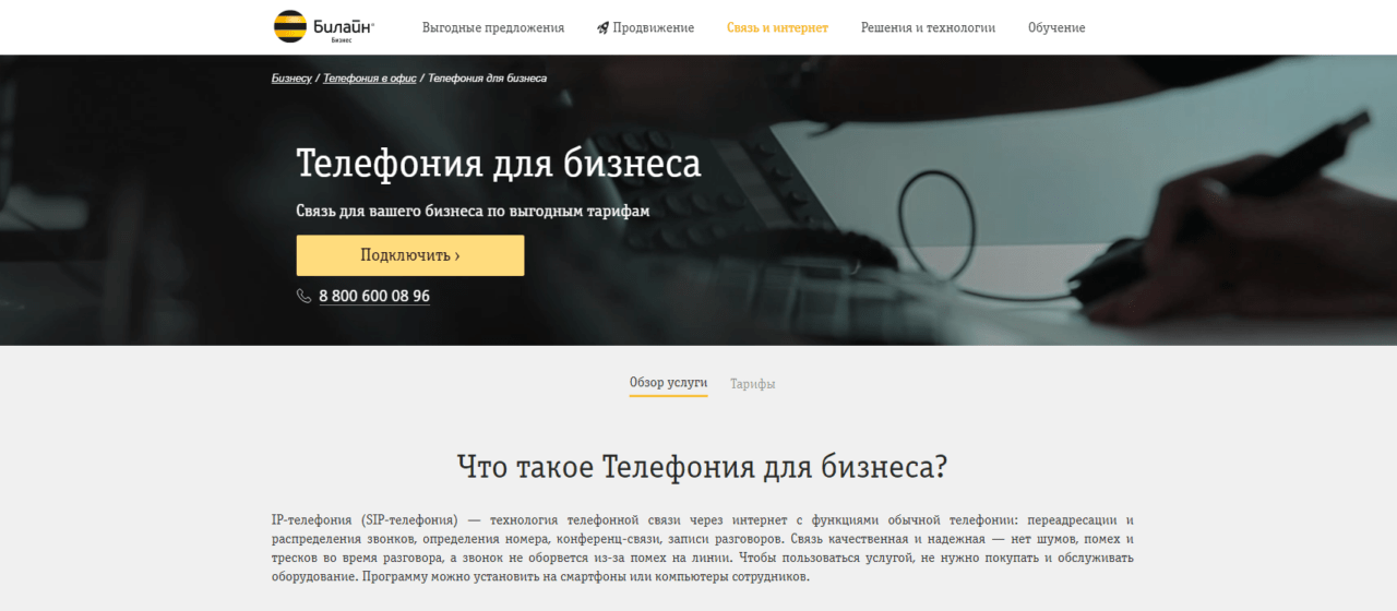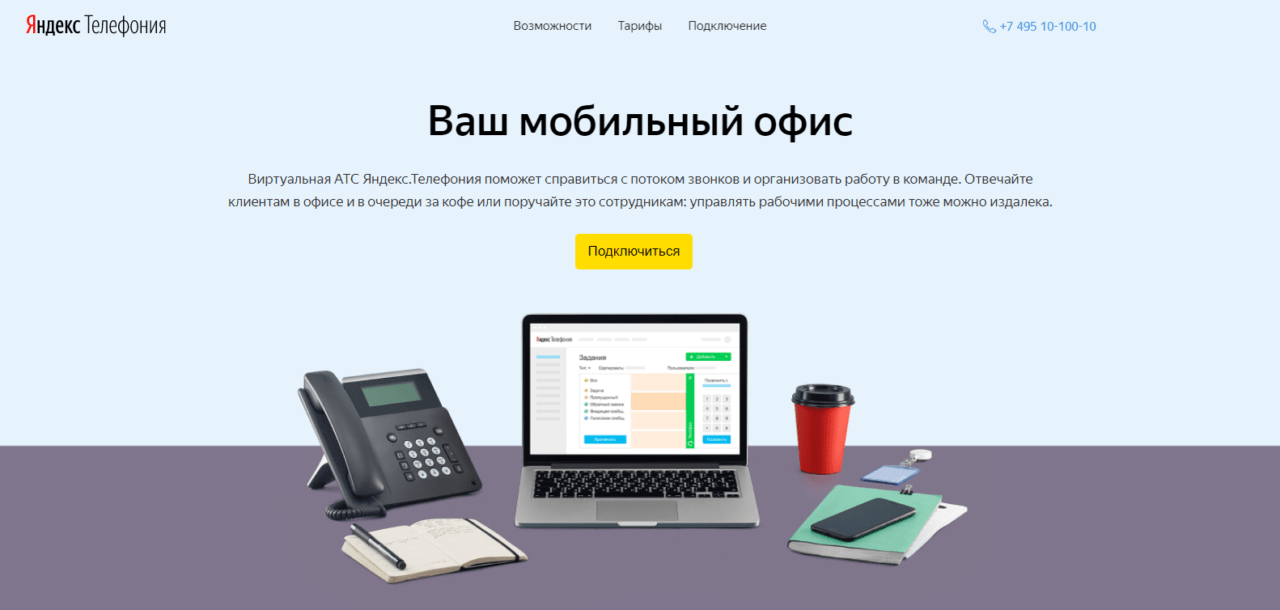 Первая компания, которая начала предоставлять услуги в сфере IP-телефонии на территории России. Доступны номера в 80 городах, подключение городского происходит бесплатно. На выбор есть 5 тарифов, которые можно подобрать в зависимости от потребностей бизнеса.