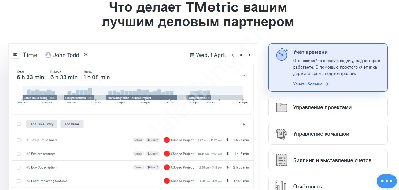 В список бесплатных тайм-трекеров для ПК обязательно нужно включить Tmetric – прекрасный продукт с русифицированным интерфейсом. Достаточно классическое приложение, которое можно поставить на все устройства – компьютер, смартфон, планшет.