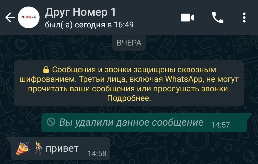 Часть истории просмотреть не удастся, если сообщение удалено до передачи на сервер. Копирование чатов производится ежедневно в 02:00. Чтобы прочесть удаленные СМС на Android/iPhone, просто переустановите мессенджер, следуя подсказкам системы. WA подтянет сохраненные данные из своего архива.
