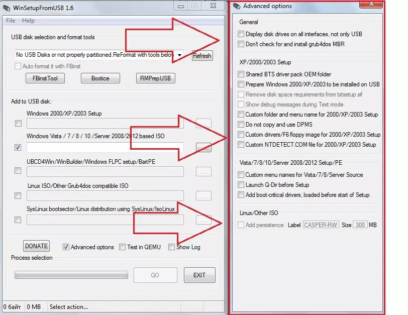 Это довольно специфические функции, и если вы в этом не разбираетесь, лучше утилиту не использовать. Но для специалистов эта и другие дополнительные функции – вещь весьма полезная, поскольку предоставляет возможность создания загрузочных флеш-накопителей нестандартным способом, используя специфически структурированный код. Наиболее типичный пример – формирование из обычной флешки носителя типа USB-ZIP. Отметим, что работать в WinSetupFromUSB с этой утилитой непросто, но если вы понимаете, о чём речь, то в принципе никаких сложностей ожидать не стоит.