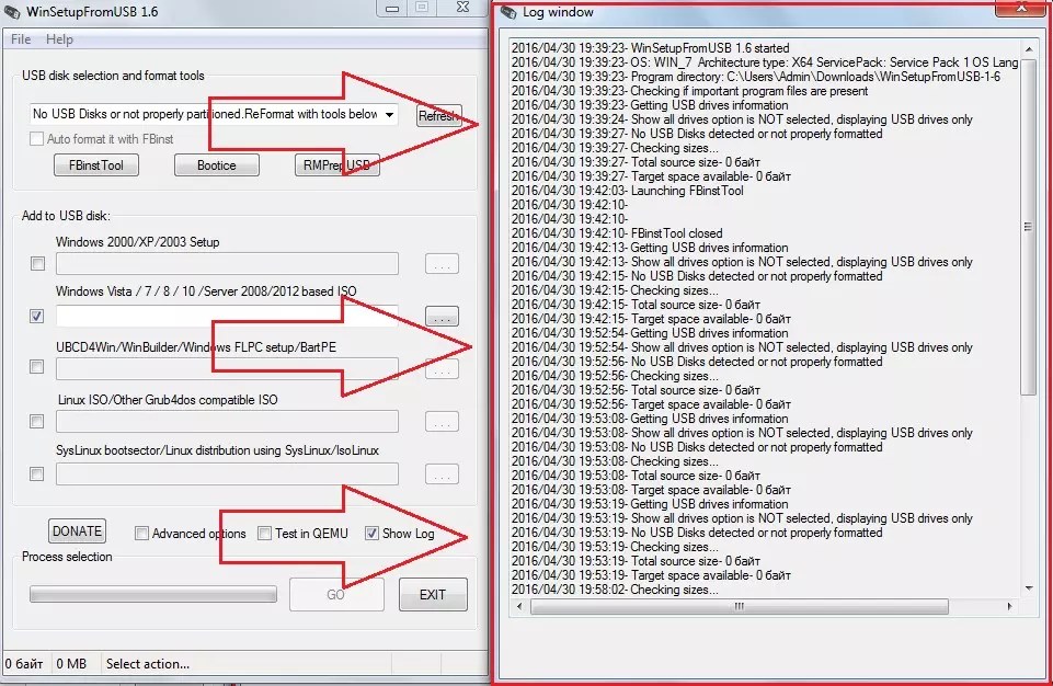 - Осталось нажать лишь кнопку GO, для того чтобы началась записываться загрузочная флешка WinSetupFromUSB. Как записать флешку, мы разобрались, теперь же перейдем к особой функции, которую предоставляет данная программа.