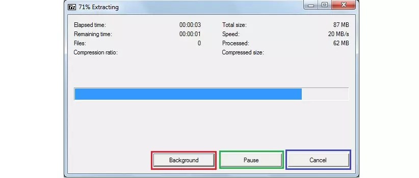 После этого нажимаем кнопку «Extract», то есть «Распаковать», выделенную синим цветом. Далее мы увидим процесс распаковки наглядно.