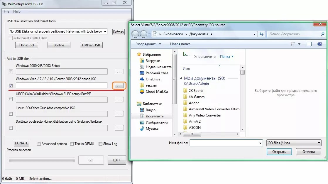 Мы уже разъяснили, откуда загружать программу и как ее устанавливать. Продолжая разговор об WinSetupFromUSB, инструкция по созданию загрузочной флешки будет предоставлена прямо сейчас. Чтобы начать работу, вам нужно будет при себе иметь всего две вещи — это саму флеш-карту и образ загруженной операционной системы с Интернета. Проследите, чтобы расширение было ISO. Если это у вас есть, то мы можем приступать.