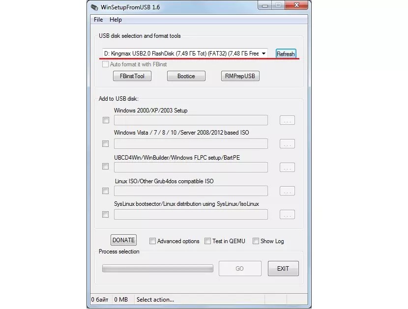 Для выполнения данной задачи следует запустить WinSetupFromUSB и сделать следующее: